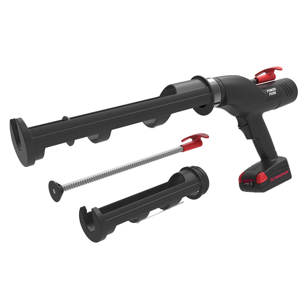 The 5000 Series is the original tool in the Meritool portfolio, having been refined and improved over 20 years. The all metal planetary and bevel gear drive system provides an overall reduction ratio of 1300:1 and provides a maximum output force of 900 lbs (4.0kN). A master speed dial combined with a feathering power trigger provides unmatched bead control. Our positive clutch design ensures precise piston position for fastest bead recovery after trigger pull. The compact and efficient design of the 5000 series makes us 20% lighter than other tools in our class. The long lived 20V x 2.0Ah battery provide up to 100 cartridge sets of dispensing power per charge. The Powerpush charger provide an ultrafast 30 minute charge time.